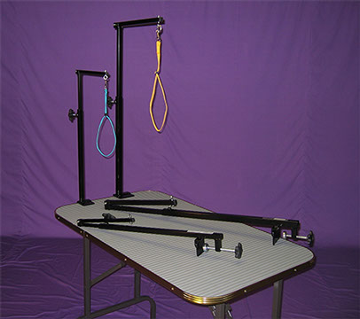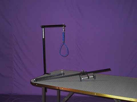 This is a steel, collapsible arm that attaches securely to your grooming table with it’s own clamp.